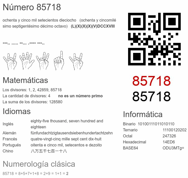 El número 85718 en Informática