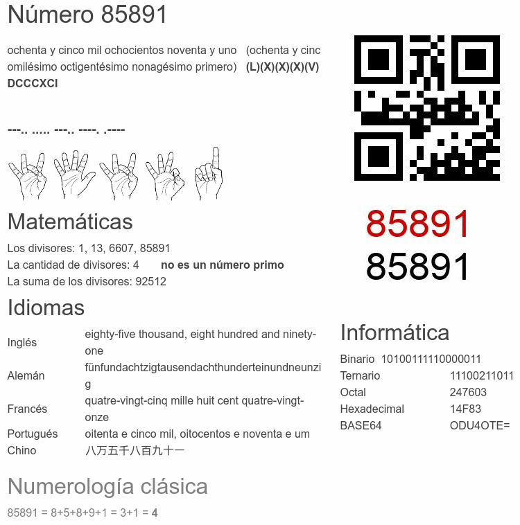 El número 85891 en Informática