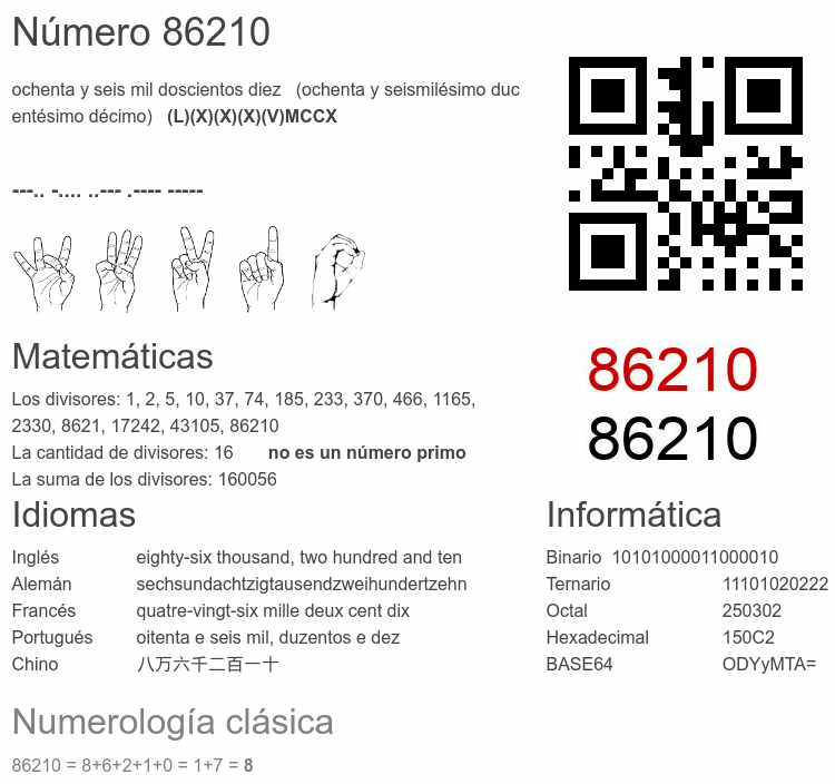 Curiosidades del número 86210