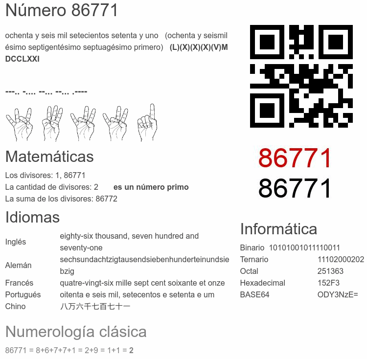 El número 86771 en Informática