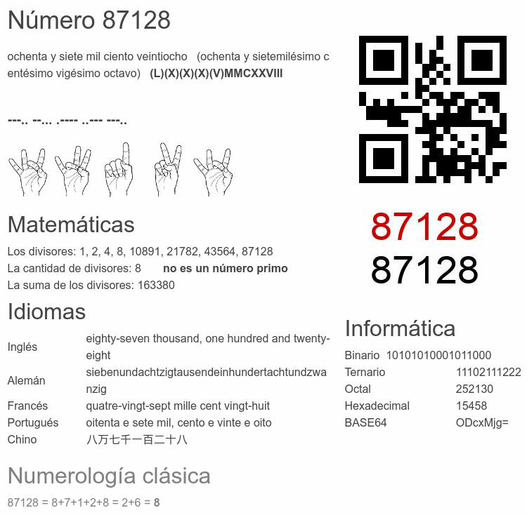 Curiosidades del número 87128