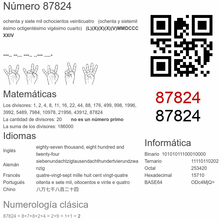 Curiosidades del número 87824