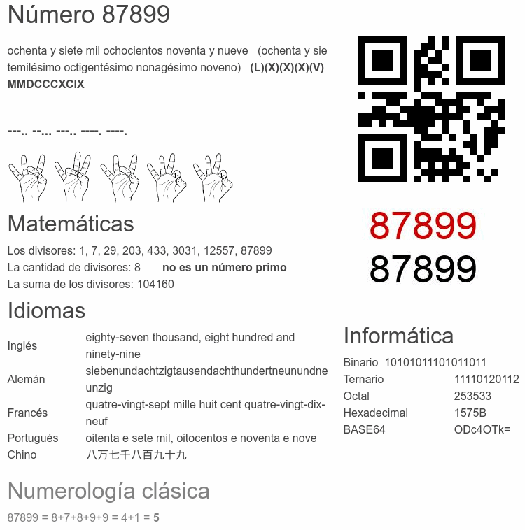 El número 87899 en Informática