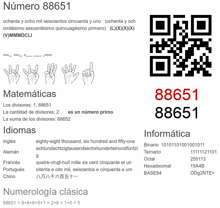 El número 88651 en Informática