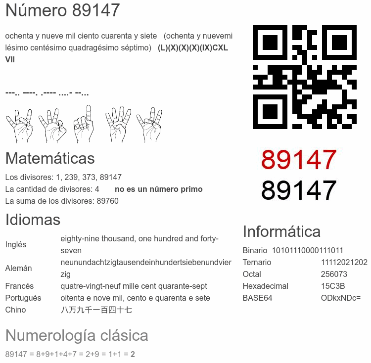El número 89147 en Informática