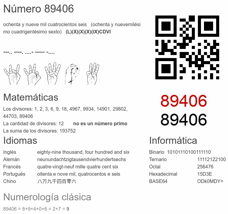 El número 89406 en Informática