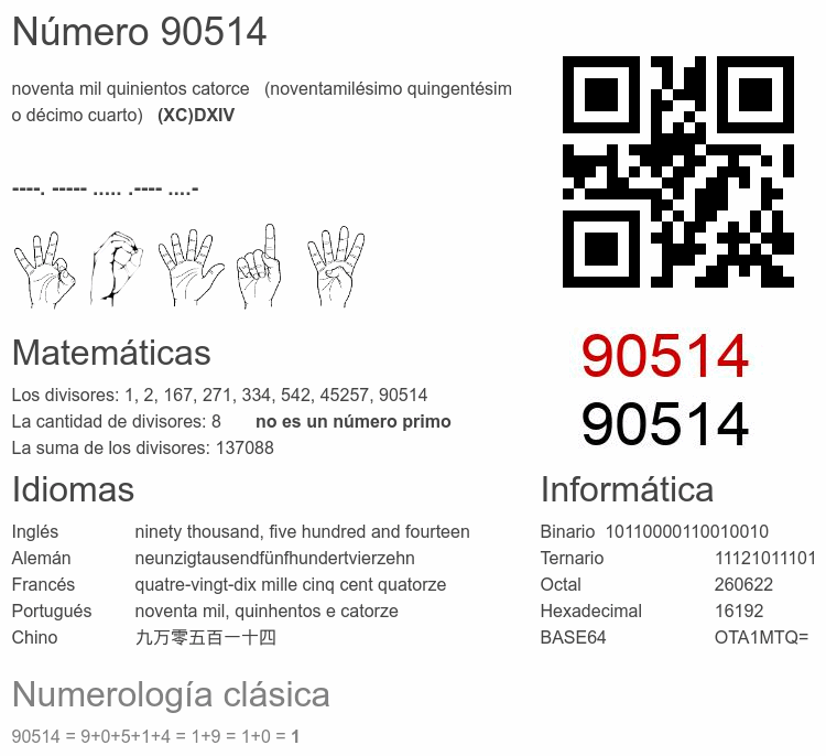 Si conoce algo interesante sobre el número 90514 o cualquier número natural (entero positivo), por favor escríbanos.Número 90 514 en otras unidades