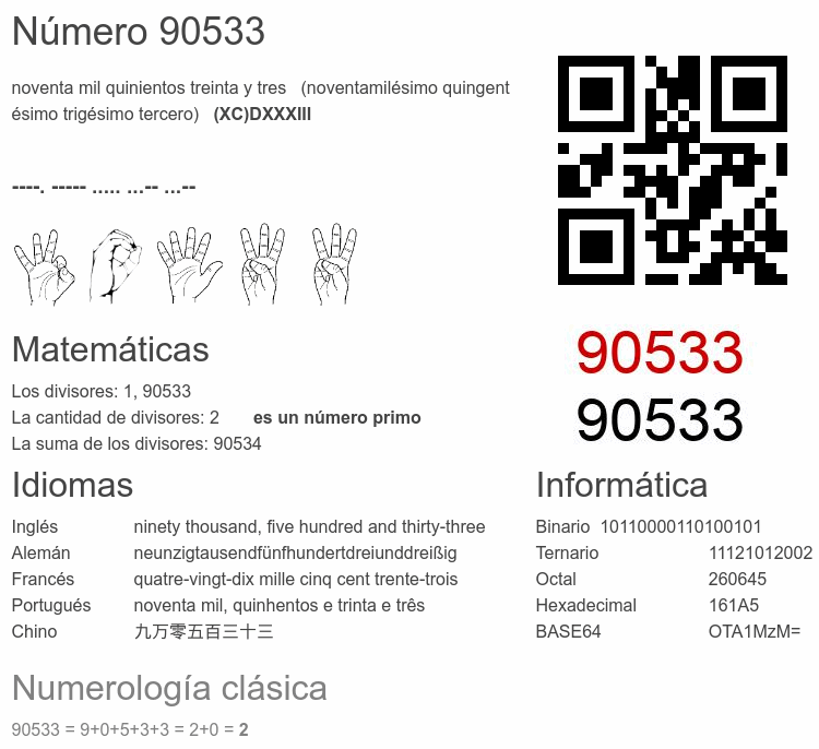 Si conoce algo interesante sobre el número 90533 o cualquier número natural (entero positivo), por favor escríbanos.Número 90 533 en otras unidades