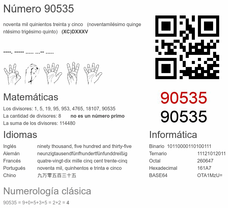 Si conoce algo interesante sobre el número 90535 o cualquier número natural (entero positivo), por favor escríbanos.Número 90 535 en otras unidades