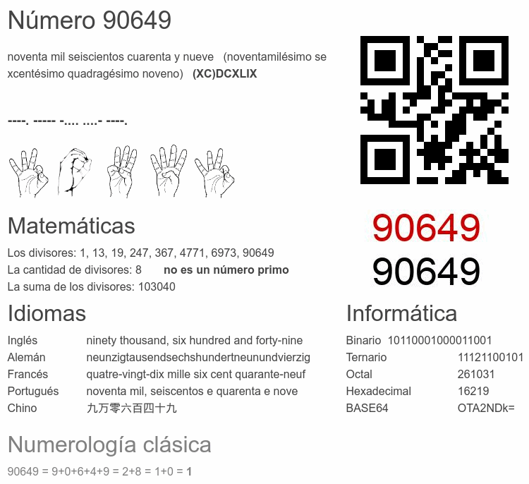 Curiosidades del número 90649