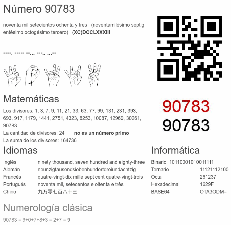 Si conoce algo interesante sobre el número 90783 o cualquier número natural (entero positivo), por favor escríbanos.Número 90 783 en otras unidades
