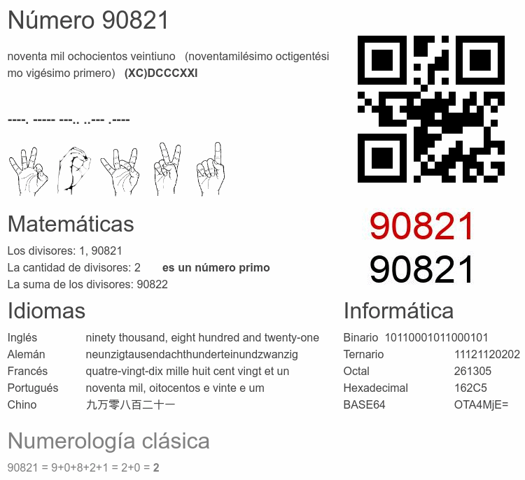 Si conoce algo interesante sobre el número 90821 o cualquier número natural (entero positivo), por favor escríbanos.Número 90 821 en otras unidades