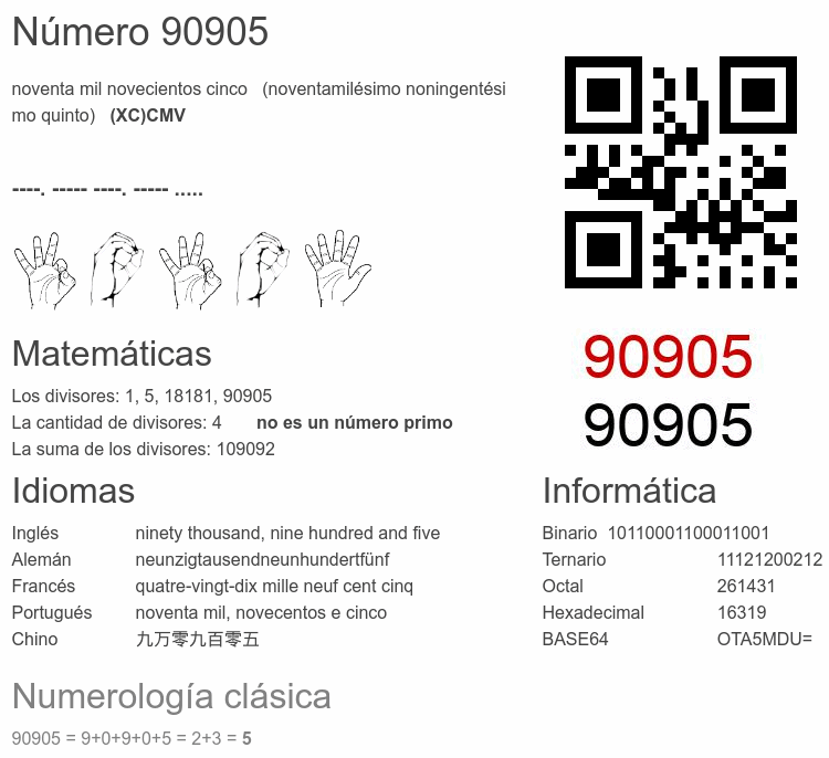 Curiosidades del número 90905