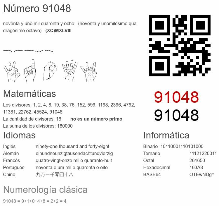 Curiosidades del número 91048