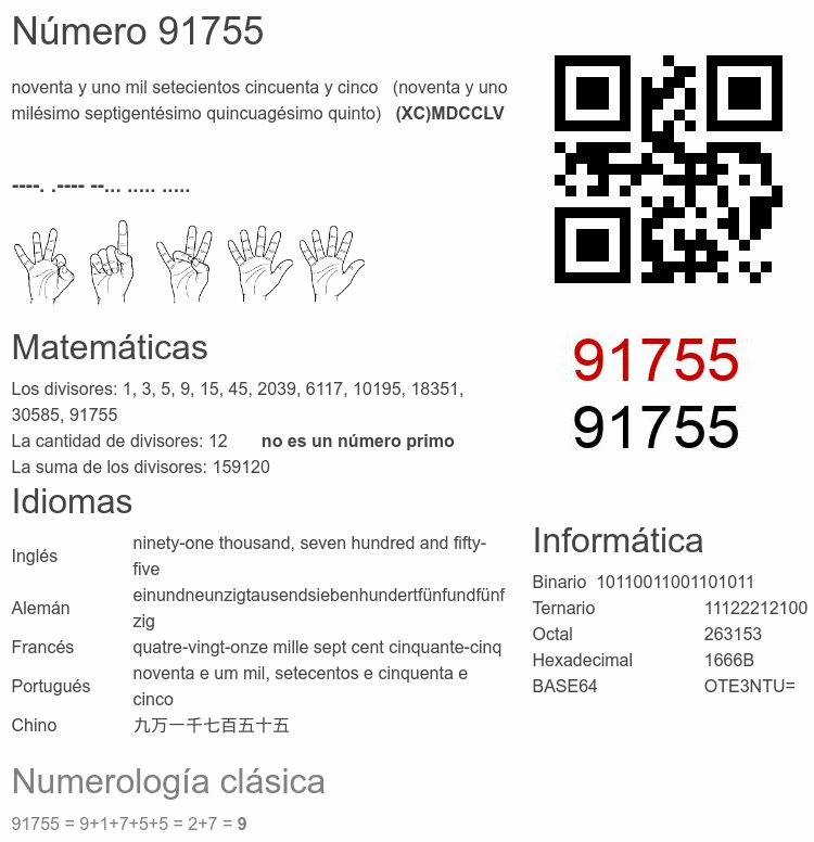 Curiosidades del número 91755