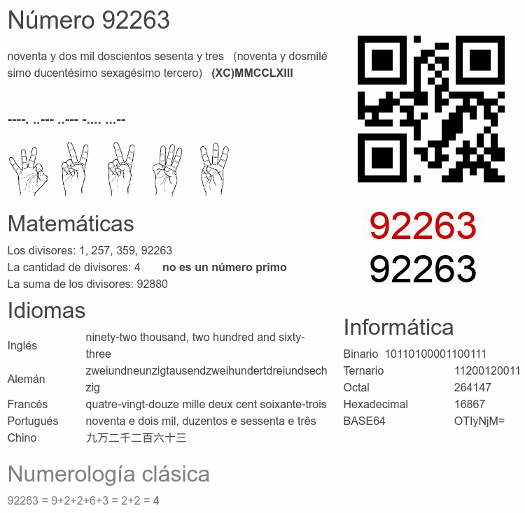 Curiosidades del número 92263