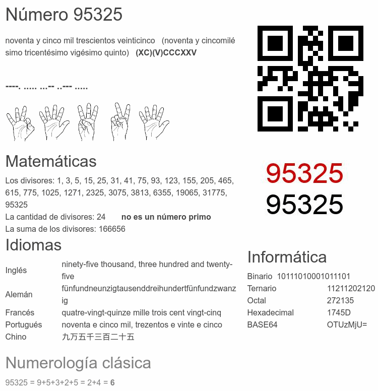 Curiosidades del número 95325