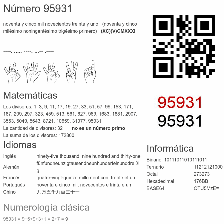 Curiosidades del número 95931
