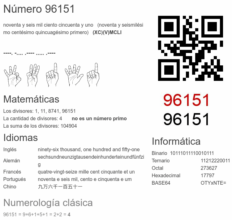 Curiosidades del número 96151