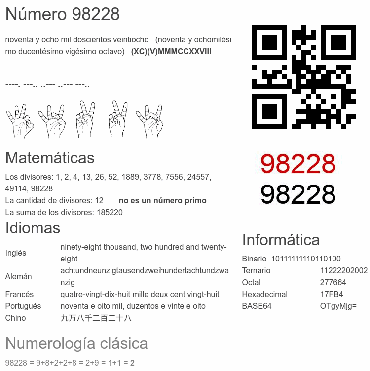 El número 98228 en Informática