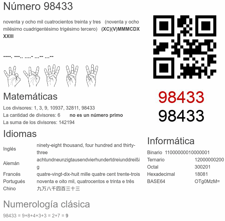 Curiosidades del número 98433