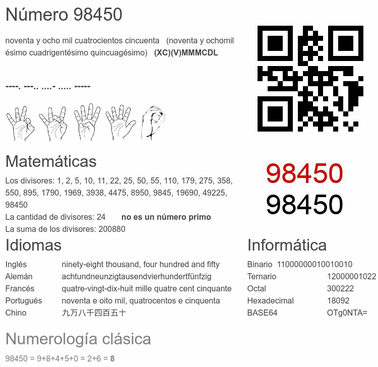 Curiosidades del número 98450