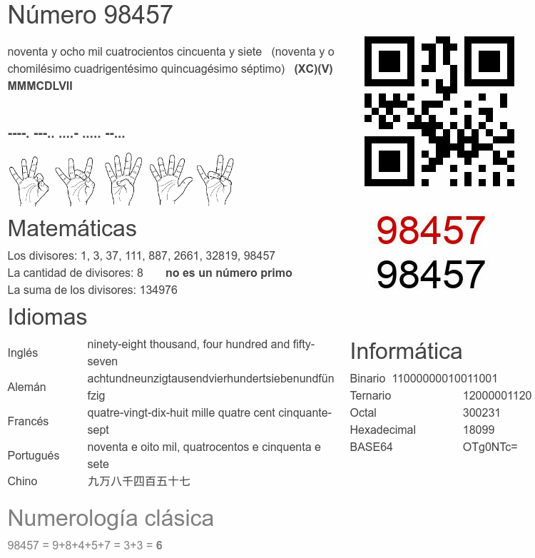 Curiosidades del número 98457