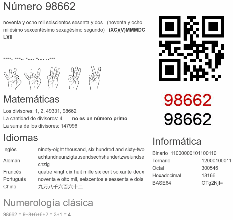 El número 98662 en Informática