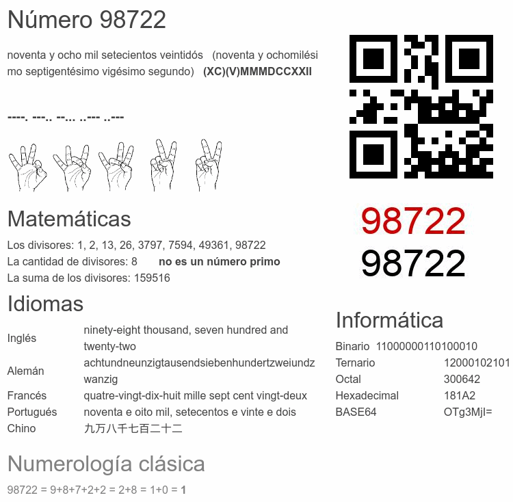 Curiosidades del número 98722