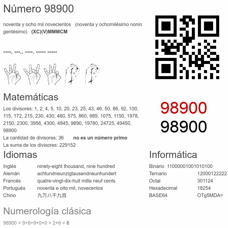 Número 98900 infografía